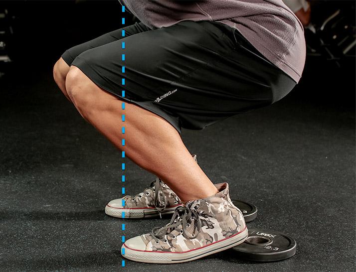 - O calcanhar deve estar poisado no chão tal como toda a planta do pé.
