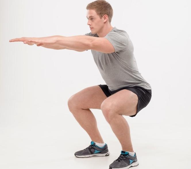 Se optar por fazer agachamento corretamente em casa e não for muito experiente neste exercício, deve colocar os braços esticados à frente do corpo para manter o equilíbrio.
