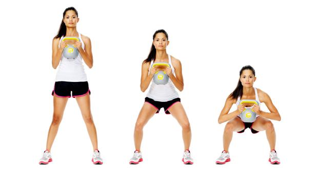 Se tiver alguma experiência neste tipo de agachamentos, pode fazer agachamento correto com peso, opte por comprar uma bola com um peso entre os 5 e os 15kg. Agarre bem a bola com as duas mão como mostra a imagem.