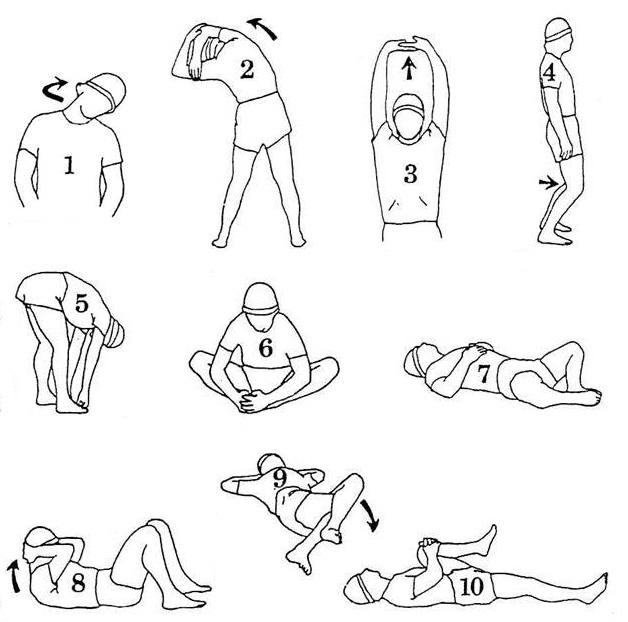 Prepare-se para os exercícios com elásticos começando por aquecer seus músculos e articulações, desta forma evitará lesões. Faça um pouco de marcha, alongue as pernas, braços e costas de acordo com o nosso artigo "Como realizar exercícios de alongamento" e com a imagem ao lado. O aquecimento deve ser realizado lentamente e demorar entre 5 a 10 minutos.
