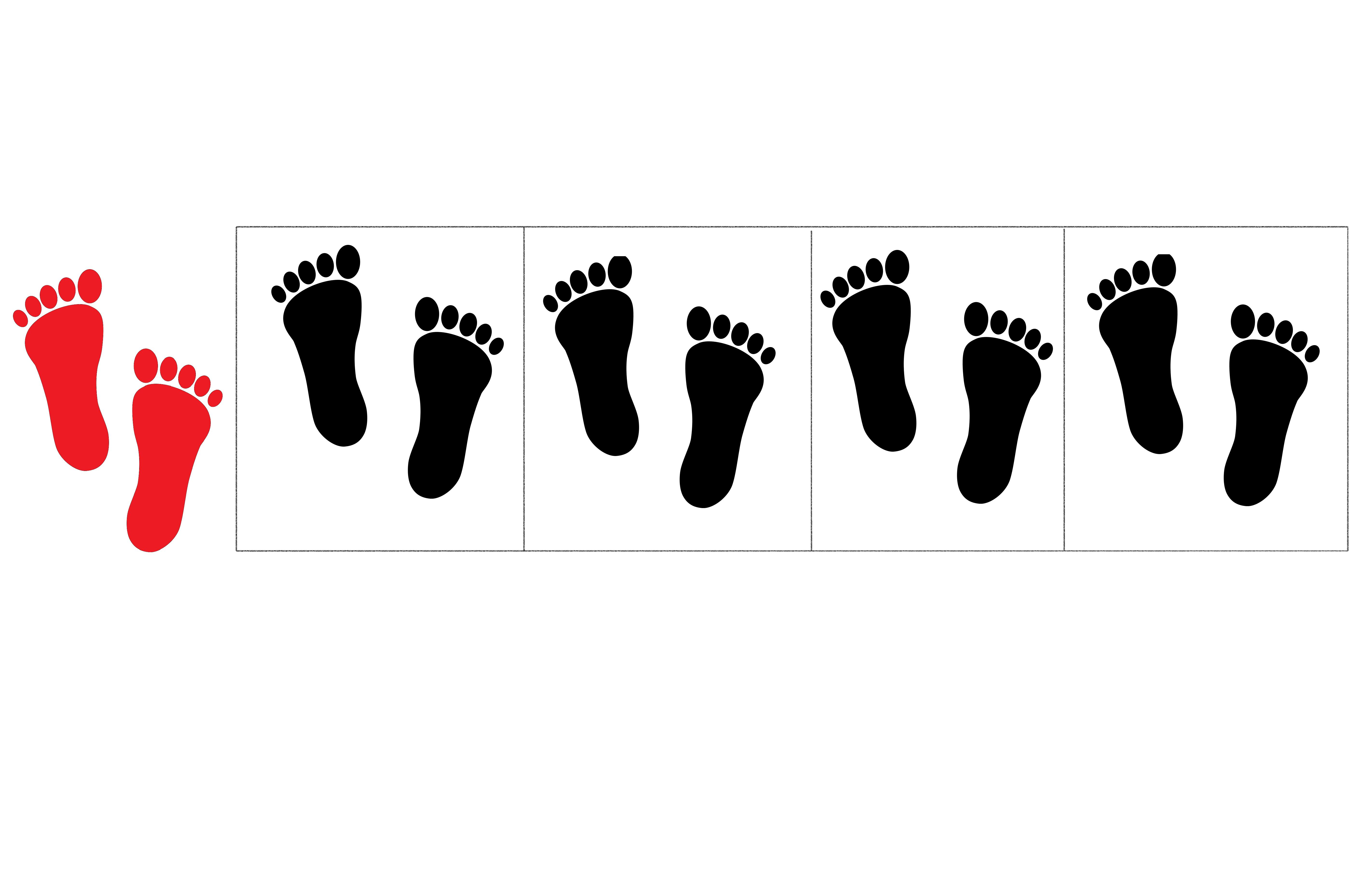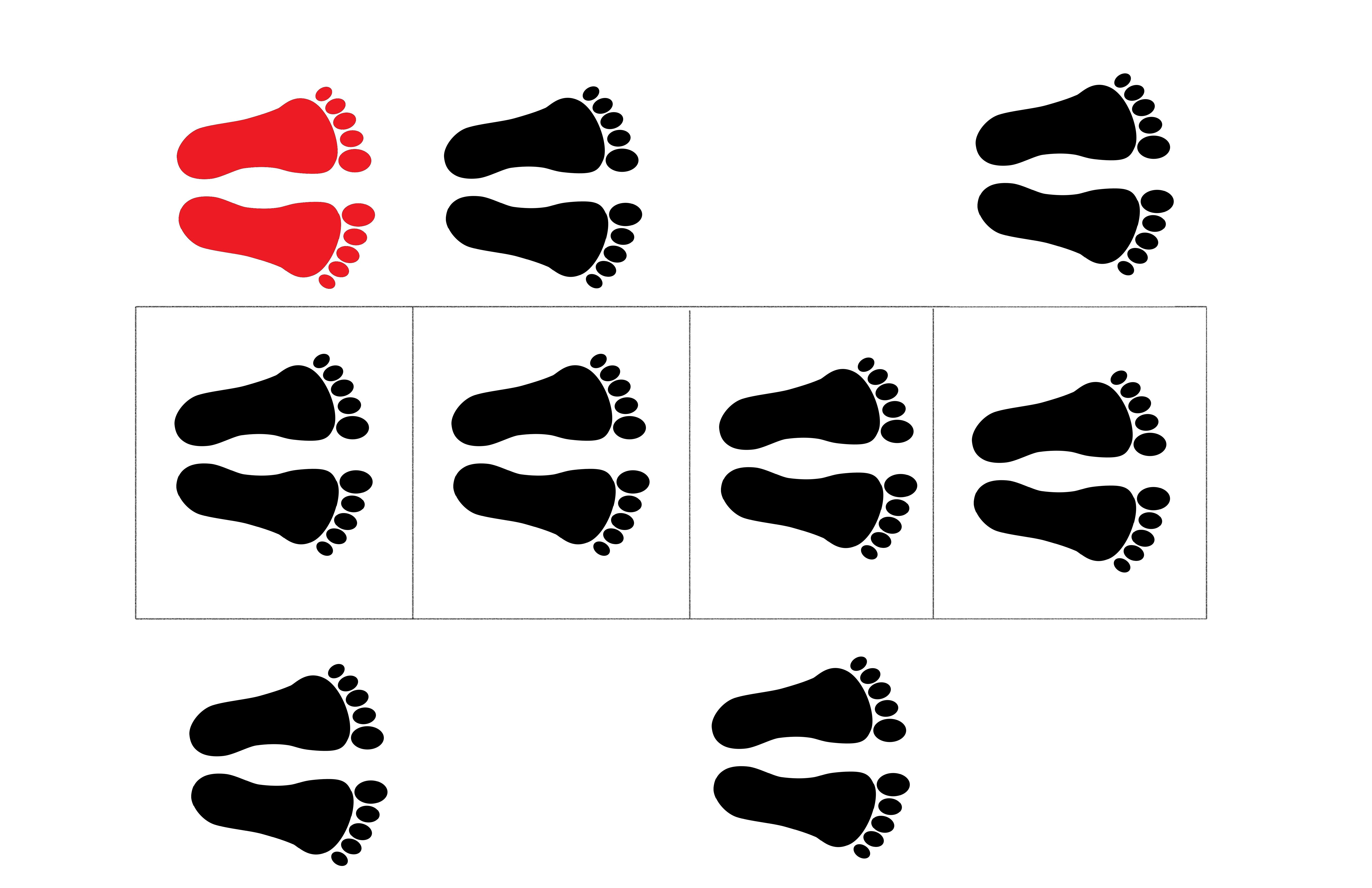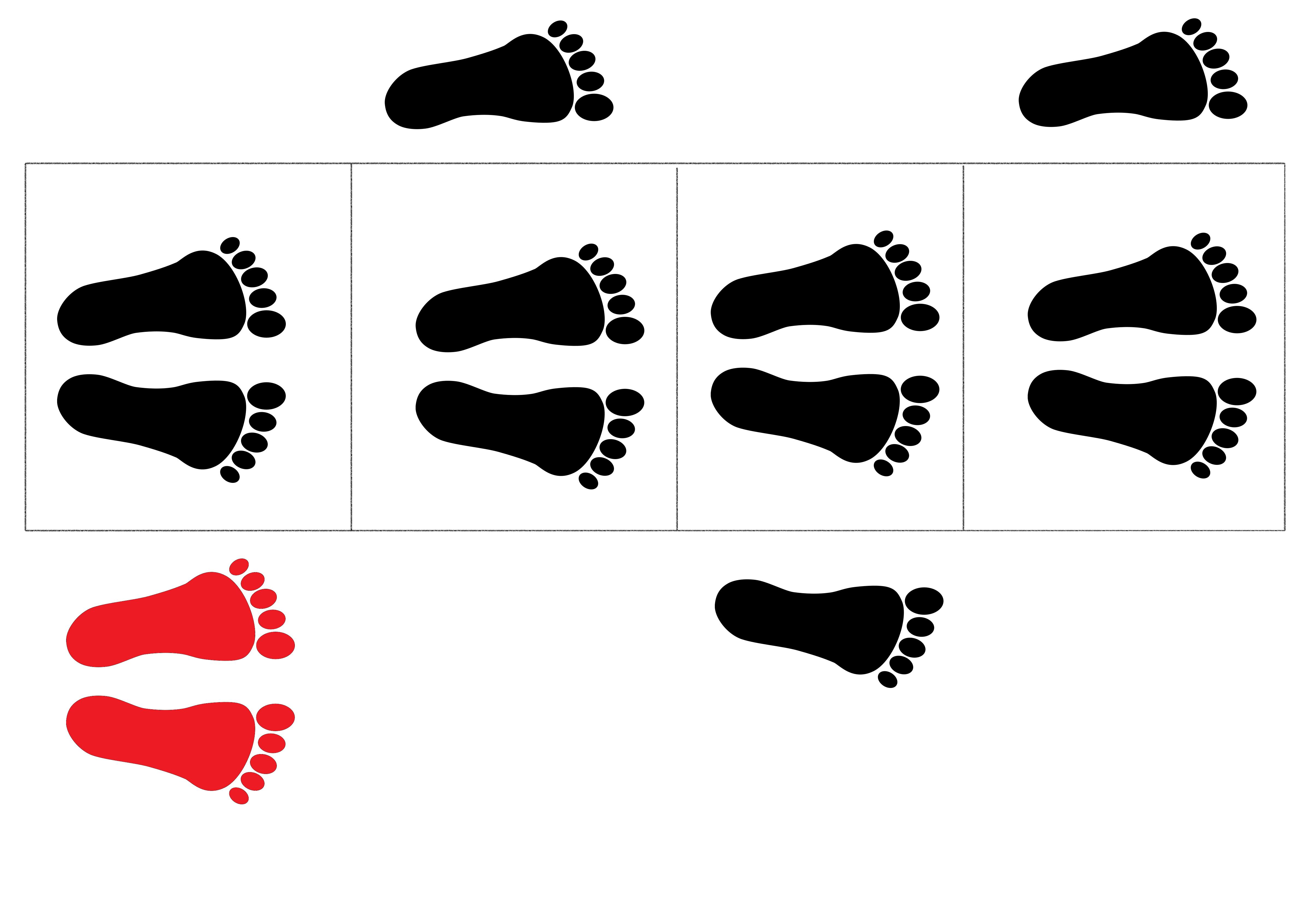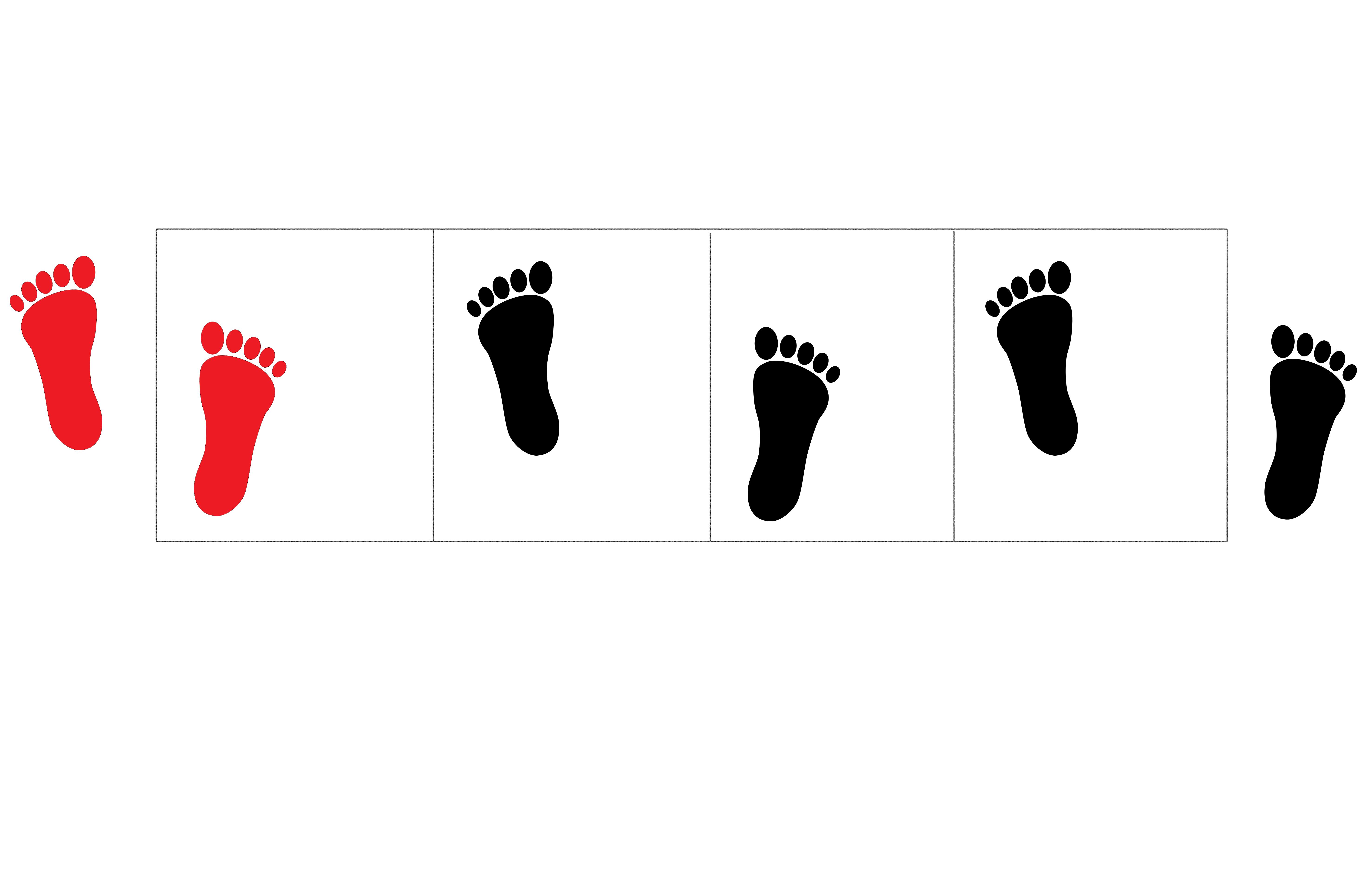 O pé esquerda entra para o primeiro quadrado, se colocando o mais à esquerda possível. De seguida, entra o direito. Coloque o pé esquerdo do lado de fora do segundo quadrado e o direito dentro do segundo quadrado, o mais à direita possível. O pé esquerdo fica então junto ao direito, dentro do quadrado.