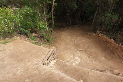 Para fazer uma pista de downhill interessante, seria legal planar a terra com um carro ou com pás e enxadas o caminho que deve ser feito. Para os jumps, o interessante é que suas bordas sejam contornadas por madeiras, para que não haja deslizamento de terra, dando mais fixação à pista. Veja a imagem.
