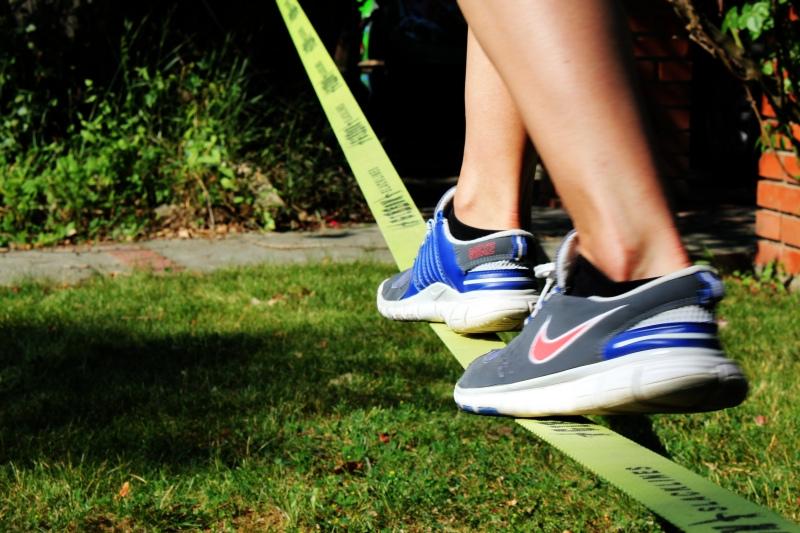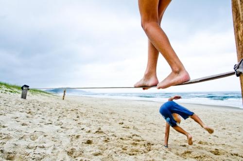 Pode praticar slackline descalço ou com tênis, experimente das duas formas e veja em qual é que se sente melhor. Treinar em grupo pode ser muito mais divertido e assim conseguirá partilhar experiências de aprendizagem. Não tenha medo, não desista e verá que se irá divertir bastante!
