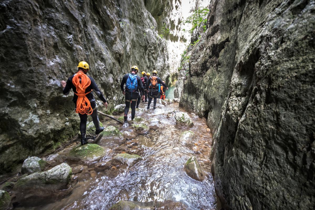 A canoagem consiste em explorar desfiladeiros ou ravinas de um ponto a outro. Combinam-se técnicas de outros esportes de montanha, como rapel, caminhada, um pouco de escalada e saltos em cachoeiras e rios. Em percursos de canoagem de baixo nível técnico, é possível explorar o canyon sem necessidade de equipamentos especializados ou técnicas avançadas. Porém, nos percursos mais técnicos, é preciso saber sobre travessia, escalada em corda, rapel e outras habilidades para praticar esse esporte.